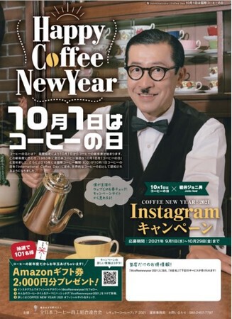 国際協定により10月1日からコーヒーの新年度が始まるとされていることから、「COFFEE NEW YEAR!」をキャッチコピーとし、昭和サラリーマン風キャラクターがInstagramをはじめとして話題の岩井ジョニ男(浅井企画)をキャンペーンキャラクターに起用した下記プロモーションを実施する。