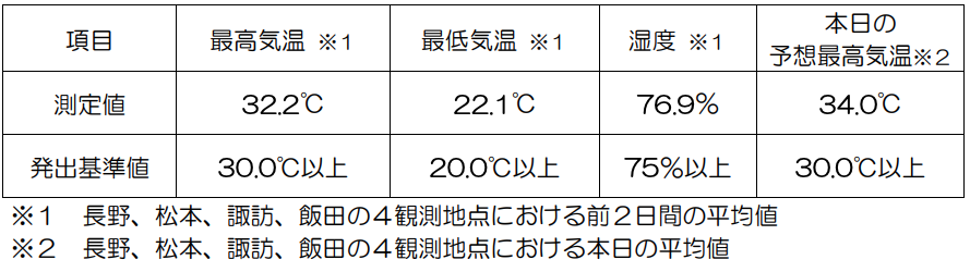 ※1 長野、松本、諏訪、飯田の4観測地点における前2日間の平均値