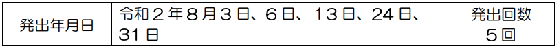 本日、夏期食中毒注意報を8月27日から8月29日までの3日間、 全県に発出した。現在気温•湿度ともに高い気象条件が続いており、食中毒の原因になる細菌が非常に増えやすくなっている。「食中毒予防の3つのポイント(細菌をつけない•増やさない•やっつける)に注意して、食中毒を予防しましょう」と県健康福祉部 食品•生活衛生課では呼びかけている。