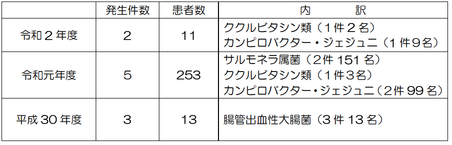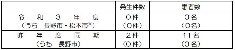 令和3年度長野県内(長野市•松本市を含む)における食中毒発生状況(現在まで)