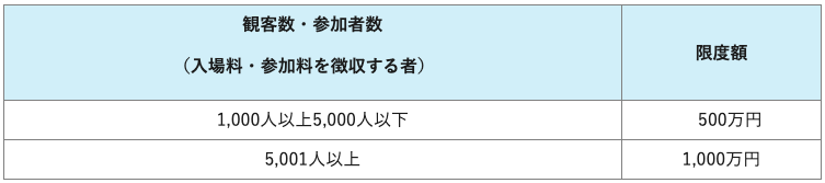 補助対象事業者は イベントを主催する団体。補助額は 補助対象経費から本補助金以外の収入を控除した額の10分の10以内。※補助限度額は1主催者につき1,000万円とする。