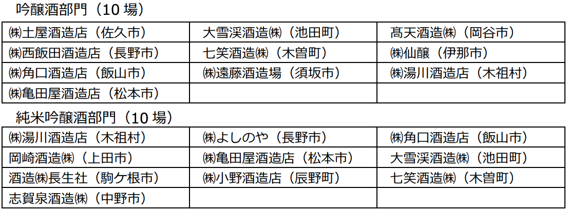 1)で行う。主催は長野県、長野県酒造組合だ。出品状況は吟醸酒部