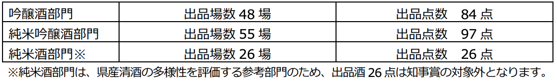 なお、純米酒部門は県産清酒の多様性を評価する参考部門のため、
