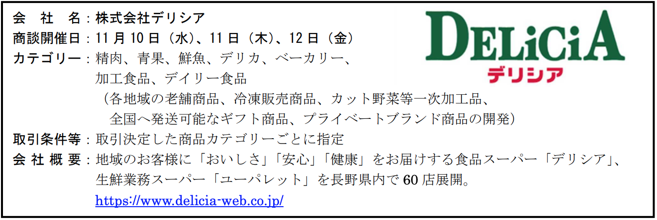 おいしい信州ふーど発掘Web商談会(第7回) 参加事業者(売り手)の皆様を募集、商談会は 11月10日(水)~12日(金)に買い手事業者別開催 |