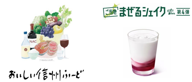 原材料のぶどう(巨峰)は長野県須坂市産だ。そのPR内容は、モスバーガーのポスターに「おいしい信州ふーど」のデザインとロゴを入れて、県産ぶどうを使った商品をPRしている。又、県のホームページにも掲載している( https://www.pref.nagano.lg.jp/marketing/kensei/soshiki/soshiki/kencho/marketing/index.html)。