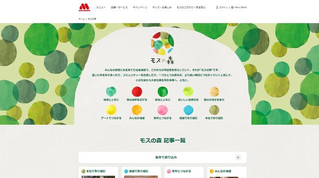 社会活動を発信する「モスの森」を公開 環境活動やフードダイバーシティの取り組みを 記事コンテンツとして発信(モスフードサービス) |