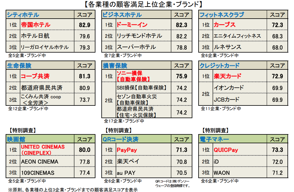 公益財団法人日本生産性本部 サービス産業生産性協議会は12月22日、2021年度JCSI (Japanese Customer Satisfaction Index:日本版顧客満足度指数)第3回調査として、9業種(シ ティホテル、ビジネスホテル、フィットネスクラブ、生命保険、損害保険、クレジットカード、映画館、QRコード決済、電子マネー)の顧客満足度を発表した。結果は以下の通りだ。