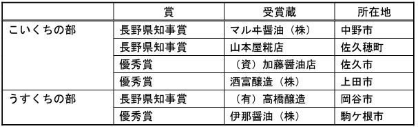 長野県産醤油の品質向上と醸造技術の研鑽を目的に、2月3日に標記の品評会を開催し、長野県知事賞ほか入賞者を決定した。審査結果、表彰式等については以下のとおりだ。