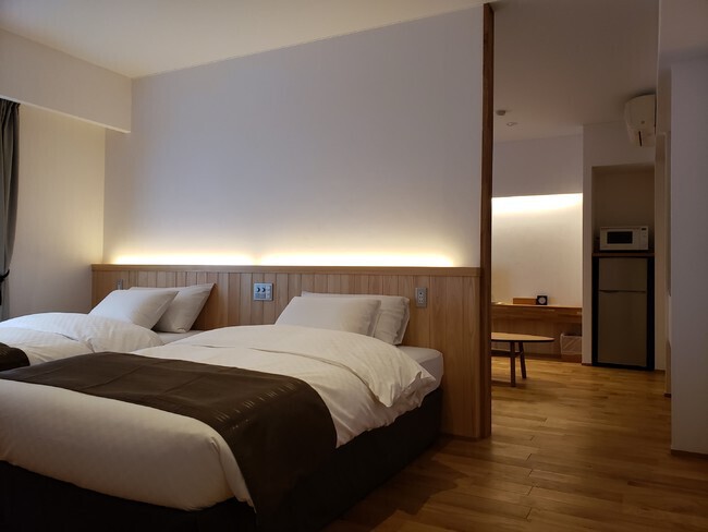 この度、松本丸の内ホテルでは、より観光後にリラックスした時をお過ごしいただけるよう、まるでご自宅のようにお履き物を脱いでお過ごしいただけ、リビングスペースとベッドスペースをセミセパレートしたお部屋の販売を開始した。
