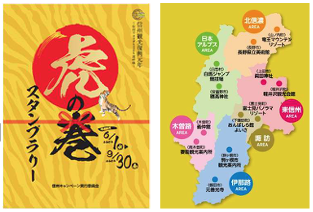 ⻑野県を訪れたお客様がより県内各地を周遊滞在いただけるよう、県内12箇所を巡る「⻁の巻スタンプラリー」を実施るので是非ご参加下さいと呼び掛けている。3箇所以上を巡って応募すると、抽選で「おいしい信州ふーど」が当たる。