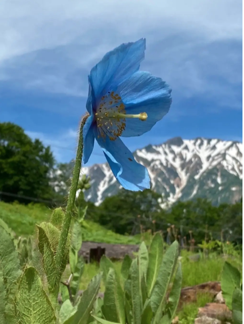 白馬五竜高山植物園では、ヒマラヤの自生地では標高2,000~4,000m付近に咲く、幻の花「ヒマラヤの青いケシ」を栽培している。同植物園の標高は1,515m、2022年6月28日に今年の第一輪めが開花。最初に開花した「ヒマラヤの青いケシ」は”スイス•アルプスヒマラヤエリア”に咲いている。