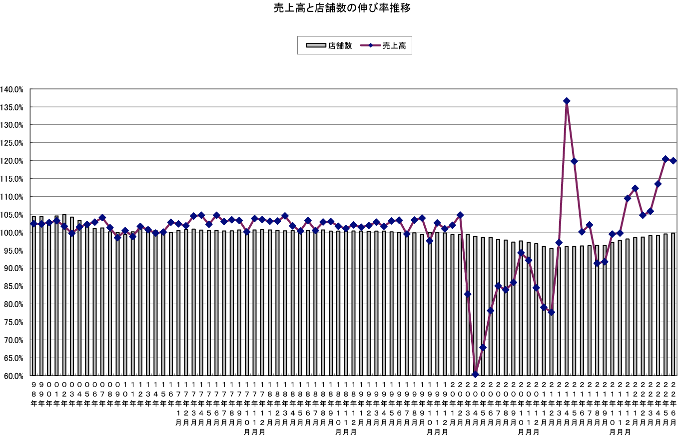 業態別概況ではファーストフード業態がデリバリーの定着化に加えて、行動制限がなくなり外食客も増えたことにより、全体売上げは108.0%だった。「洋風」はデリバリーや注文のデジタル化などの「利便性」と各種キャンペーンの好調が相まって、売上げは108.1%。19年比でも121.4%と引き続き業態を牽引した。