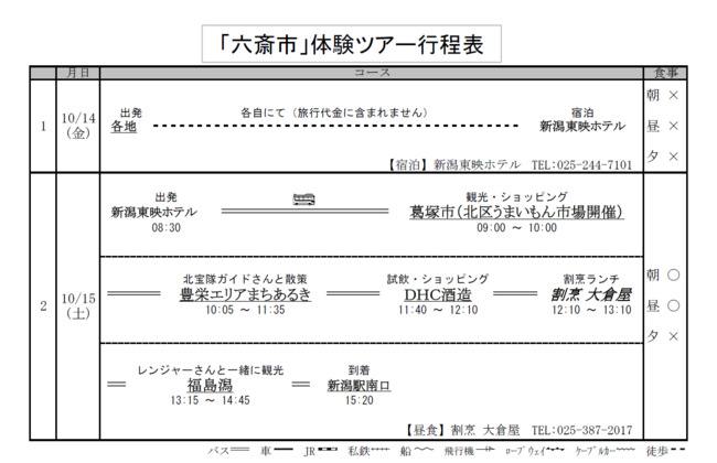 1泊2日のツアー1泊2日(新潟県観光協会)