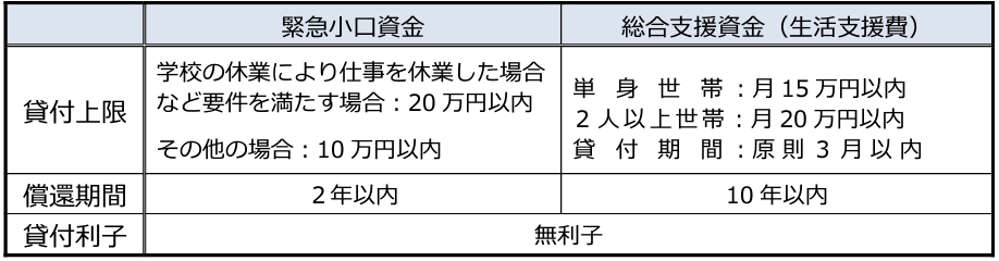 変更点は申請期限の9月30日(金)まで(変更前令和4年8月31日)となる。特例貸付の概要は新型コロナウイルスの影響により収入が減少した方に対し、必要な生活費を貸付ける制度だ。貸し付けの上限額等は以下のとおりだ。