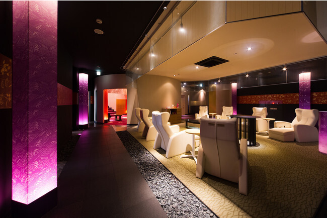 和の伝統色「加賀五彩」、九谷焼や加賀友禅などをあしらった雅な空間。トリートメントルーム陶板浴などの施設を備えた北陸最大級のスパ。