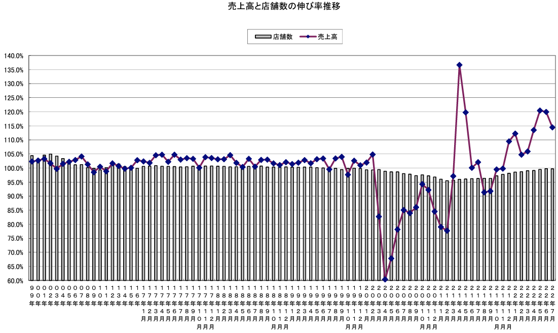 一般社団法人日本フードサービス協会(略称:JF=ジェフ本部:東京都港区、近藤正樹会長)は、協会会員社を対象とした外食産業市場動向調査2022年7月度の集計結果をまとめた。「外食産業市場動向調査」は新規店も含めた「全店データ」を業界全体及び業態別に集計し、従来の前年同月比に加えて一昨々年同月比も算出し掲載している。