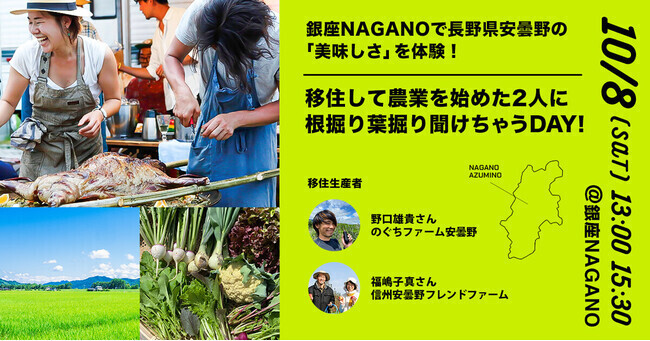 名称:【銀座NAGANOで安曇野の“美味しさ“を体験!】移住して農業を始めた2人に根掘り葉掘