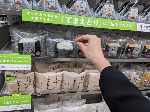 消費者庁、農林水産省、環境省、一般社団法人日本フランチャイズチェーン協会が連携して、商品棚に掲示する啓発物を作成し、消費者へ「てまえどり」を呼びかける。協会加盟のコンビニエンスストア6社にて、作成した啓発物を活用し、買物をされる方へ周知を行う。また、消費者庁、農林水産省、環境省、協会のWebサイトにて啓発物の提供を行う。
