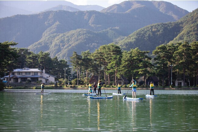 アルプスBASEでは、千人塚公園の豊かな自然を満喫するアクティビティご用意している。今回は、SUP、ニジマス釣りを体験いただいた。園内中心に位置する城ヶ池、広がる壮大な中央アルプス南駒ヶ岳、山々からの爽やかな風、秋風の香り、鳥のさえずりなど、五感で楽しむSUPは、贅沢な時間となった。参加者からは、「初めてのSUP体験だったけど、インストラクターの丁寧でユーモアたっぷりな指導のおかげで、楽しく体験できた」「綺麗な風景の中で、水の音を聞きながら行うSUPは、日々の疲れを癒す最高の時間になった」などの声があがった。