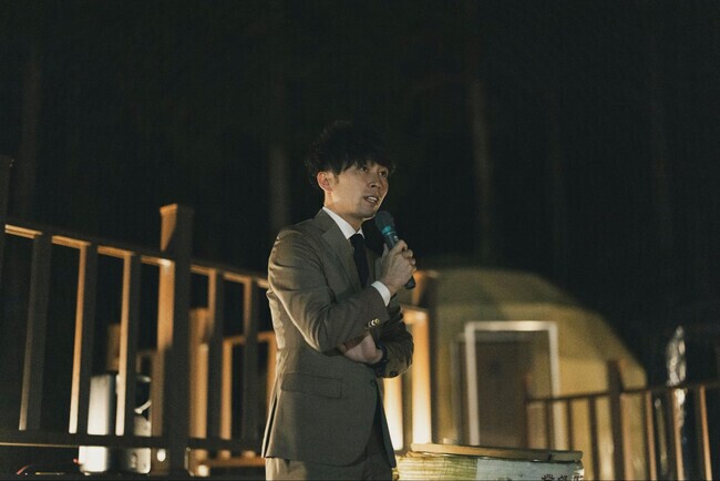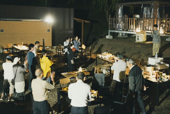 夕食を囲んで行われたレセプションでは、アルプスBASEを手掛けたプラザクリエイト代表取締役の新谷隼人より、ウェルカムスピーチがあった。「地域の皆さまなど多くの人に助けていただきながら、開業を迎えることができました。この町の良さをよりたくさんの人に知ってほしいという強い気持ちを持った飯島町の皆さまとなら、よりよい施設ができると確信を持ってこの事業をスタートさせました。ゲストや地域の皆さまにとって、アルプスBASEが思い出の広場となり、明日への活力となることを願っております!」と熱量たっぷりな挨拶であった。