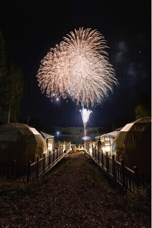 ※花火は別途オプションとなっている。千人塚の城ヶ池で個人のお客様は勿論、企業の皆様もプライベートな花火を打ち上げることができる。