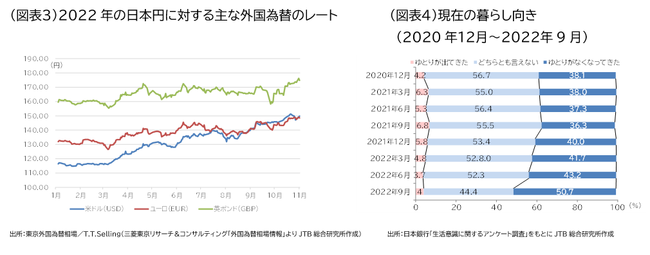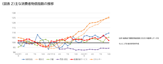 コロナ禍における旅行をとりまく経済環境や生活者意識は、ここにきて大きく変わりつつある。2020年に新型コロナが世界的に広がってしばらくは、行動制限の要請により外出や飲食に関連する消費が減少、その結果可処分所得が増加となり、それに伴うアフターコロナにおける旅行のリベンジ消費への期待が高まっていた。