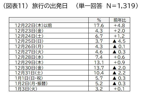 調査内容:2022年12月23日~2023年1月3日に実施する1泊以上の国内旅行(帰省を含む。商用