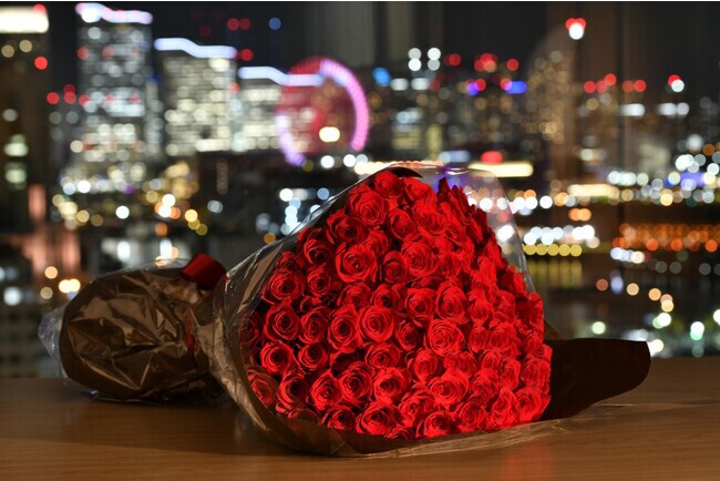 スカイチャペルには永遠の愛を誓うアイテムとして、“結婚してください”の意味をもつ赤いバラ108本の花束をご用意、映画のワンシーンのようなプロポーズが叶う。お部屋は横浜港の青い海と空、美しく煌めく夜景が一望できる広さ130㎡のタワー館プレジデンシャルスイートにご滞在、花びらのデコレーションやバルーン、高性能ホームプラネタリウム、また、ルームサービスにてシャンパンをお届けし、プライベートな空間に特別感をプラスする。神聖なチャペルでの感動的なプロポーズやロマンティックなスイートルームでのひとときなど、心に残る最高の記念日にいかがでしょうか。