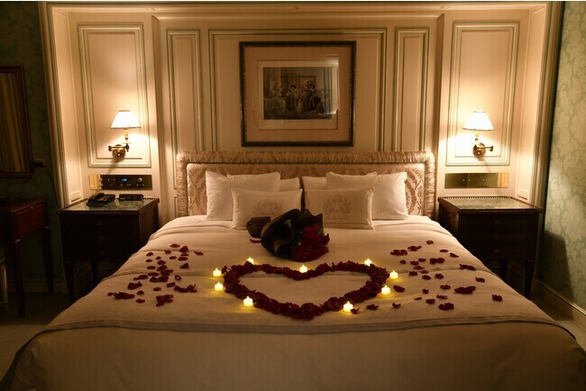 ホテルオリジナルラベルシャンパン(フルボトル)やベッドルームのバルーンと花びらの装飾、高性能ホームプラネタリウムや入浴剤としてご利用いただけるソープフラワーなど、プライベートな空間に特別感を演出、ドラマティックなプロポーズの余韻に浸ることができるご滞在のひとときをお過ごし下さい。