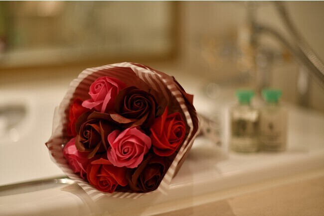 バスタイムには入浴剤をしてご使用いただけるバラのソープフラワー