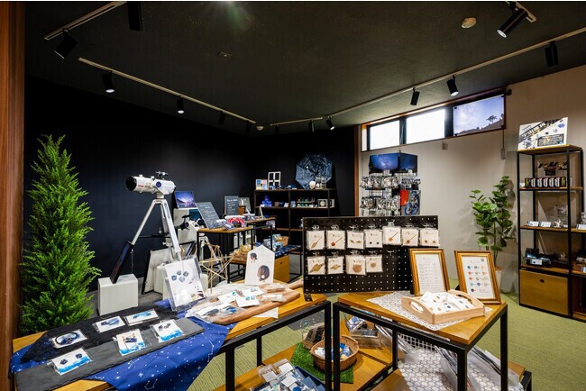 星や宇宙をテーマとしたグッズを販売。阿智村のオリジナルグッズも揃えている。