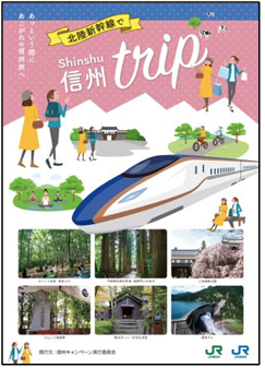 信州キャンペーン実行委員会では、北陸新幹線金沢~敦賀間の開業まで1年となったことから JR西日本•JR東日本の駅や列車内で、沿線の県内観光スポットを紹介する誘客PRを実施する。金沢~敦賀間の開業を契機として、関西圏•北陸圏からの誘客を更に促進する。