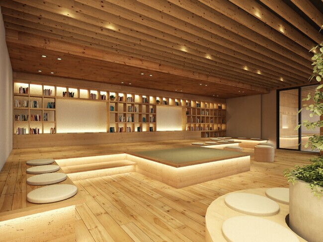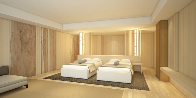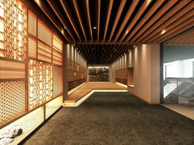 館内のしつらえや食事•お土産等、直接肌で味わっていただく体験は、「信州五感のショーケース」をキーワードに、信州らしさを存分に味わっていただけるよう取り揃えた。館内空間には、組子細工をモチーフにした壁面を一部採用している。古くから日本建築に登場する文様装飾のひとつである組子細工は、木材が織りなす直線の造形美と、組子の隙間からこぼれる柔らかな光が特徴。あたたかく穏やかな空間で、旅の疲れを癒していただければ幸いだ。
