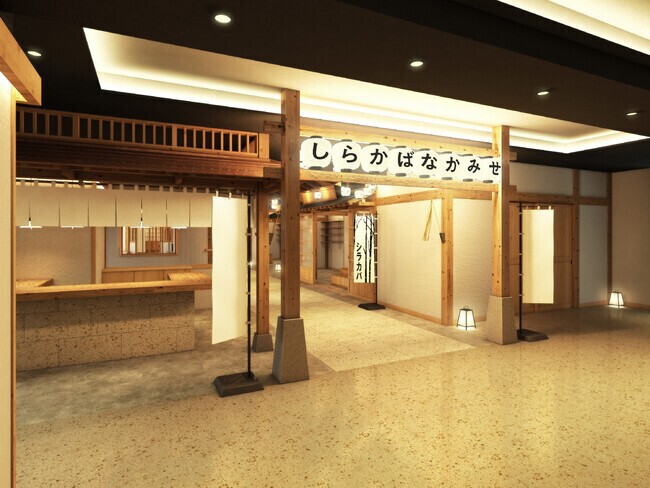「しらかば仲見世」内は信州郷土食・地酒・伝統工芸・縁日・広場と大きく5つの要素を有し、一日中楽しんでいただける賑わいの場となっている。縁日内では昔懐かしい駄菓子、射的やヨーヨーすくいなどの遊びが並び、お子さまはもちろん大人たちも昔話に花を咲かせてみたりと、老若男女に関わらず童心に帰って愉しんでいただきたい場所だ。
