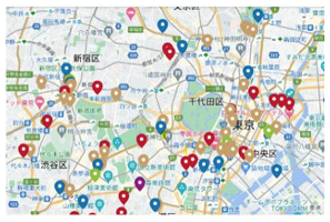 ・地図中のピンから自宅や外出先近くのお店を簡単に検索