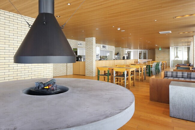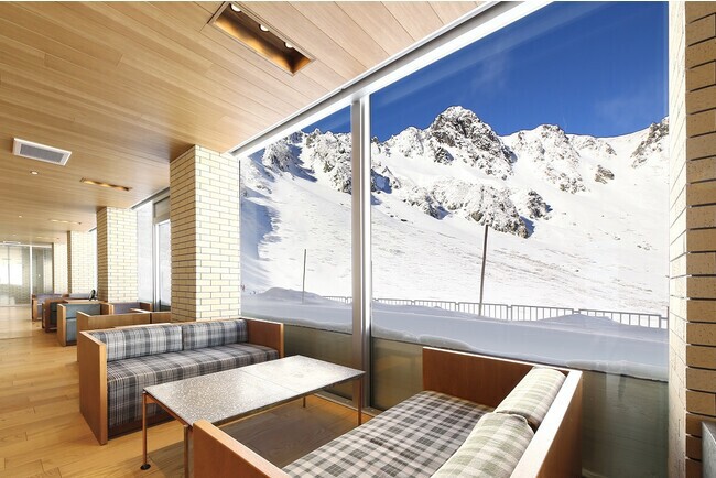 「ちょっと贅沢な山小屋風」をテーマにレストラン内装をリニューアル。新設の大型窓からは、千畳敷カールなど中央アルプスの大自然を一望できるようになった。内装は山小屋をイメージした大型暖炉風の卓を設営し、温かみのある色合いにしたほか、一人ひとりにゆったりとしたスペ―スを確保し、贅沢な時間をお過ごしいただける空間にした。