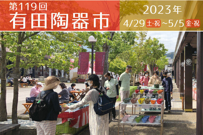 佐賀県有田町では4月29日(土•祝)から5月5日(金•祝)まで、「第119回有田陶器市」が開催される。約20,000坪の敷地に陶磁器の専門店が軒を連ねる有田焼ショッピングリゾート「アリタセラ/Arita Será 」へは、有田駅から無料シャトルバスで約5分。有田陶器市の町内会場からもシャトルバスのルートになっているのでアクセスも良好だ。お車でお越しの際は、800台収容可能な大駐車場に、無料で駐車いただける。