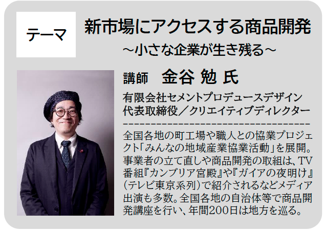 商品開発セミナーのテーマは「新市場にアクセスする商品開発~小さな企業が生き残る~」で