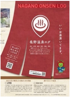 (2)パンフレット「長野温泉ログ」の発行。 ➣全県の主要温泉地を掲載 ➣県内道の駅、高速道路主要サービスエリア(計10箇所)への設置(6月中旬~) ➣大阪観光情報センター、名古屋観光情報センター、銀座NAGANOへの設置