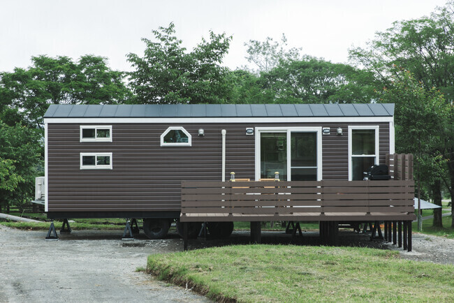 妙高戸隠連山国立公園 戸隠キャンプ場にトレーラーハウスを利用した