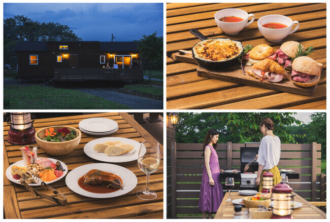 食事付きプランではセミセルフの夕食、朝食をご用意。それぞれに完備した専用コンロで簡単な調理をしていただくことで時間を気にせず出来立ての料理を味わっていただける。地元食材をふんだんに使ったメニューをお楽しみ下さい。