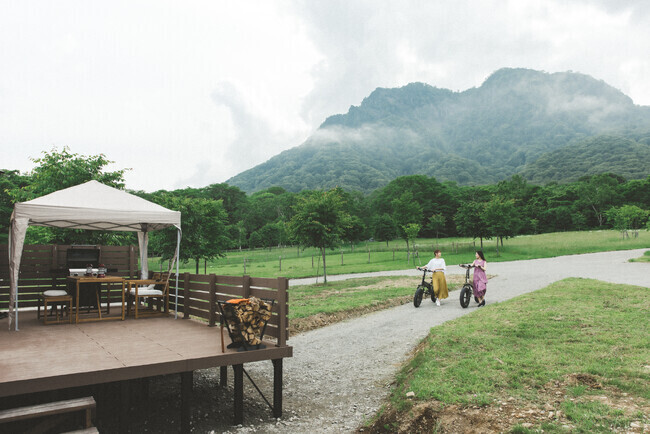 標高1,200mの心地良い風が吹き抜ける妙高戸隠連山国立公園「戸隠キャンプ場」その最上部の一等地に佇むトレーラーハウスでは、「戸隠連峰」の山々と約22haの広大なフィールドを独り占め。トレーラーハウスの限られた空間で過ごすからこそ、一歩外に出るとそこに広がる戸隠の雄大な自然は贅沢そのもの。大自然の中で大切な人と一緒に過ごす素敵な時間を演出する。自分だけの別荘(セカンドハウス)のような寛ぎの空間と贅沢な時間をお楽しみ下さいという。