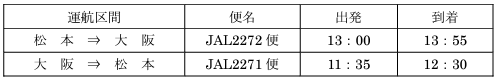 (参考)日本航空(株)信州まつもと空港⇔大阪国際空港(伊丹)線について