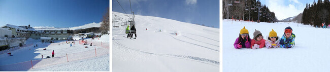 周りを気にせず滑れるワイドバーンが多いのが特徴。ファミリー向けから上級者向けのコースまである「若栗ゲレンデ」、非圧雪の急斜面やすべりやすい中斜面などがある「里見ゲレンデ」がベースになっている。アルプス第10ペアリフトでスカイビューゲレンデへ行くと、大自然の景観が楽しめる。