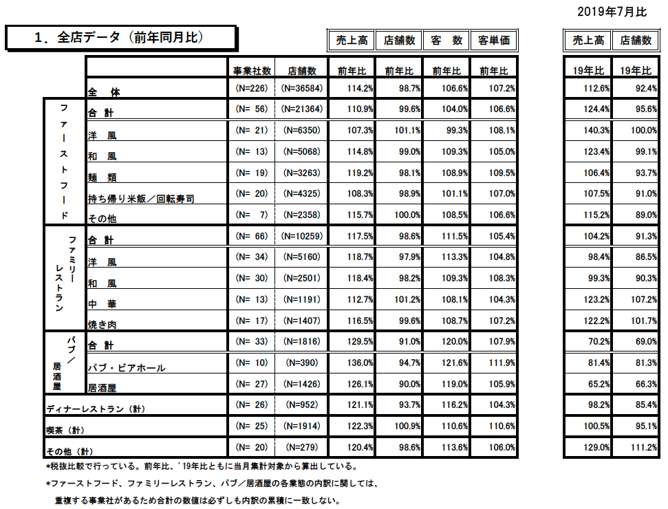 <外食市場7月の動向>