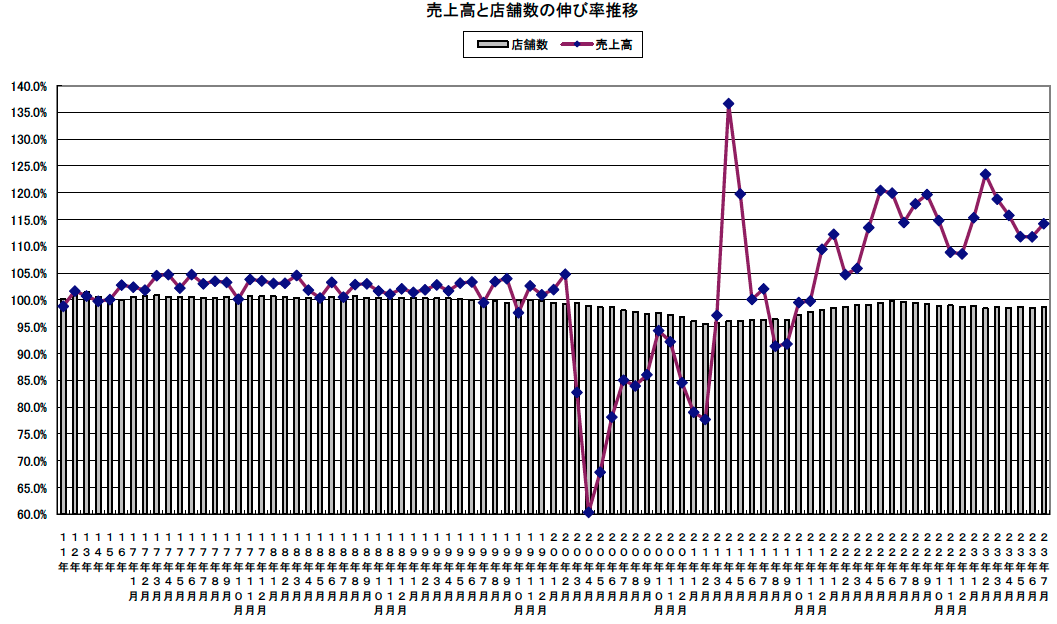 コロナの5類移行後は各地で花火やお祭りなどのイベント再開で人流回復が進み、インバウンドの回復と相まって、7月の外食需要は堅調に推移した。九州などで豪雨の影響を受けたものの、関東などでは好天が続き、全国の平均気温がこの100年余で最高を記録するほどの暑さの中、夏の季節メニューが好調、全体売上げは114.2%となった。但し19年比112.6%は、相次ぐ客単価の上昇と19年7月が長雨低温で売上げ不調だったことが背景にある。