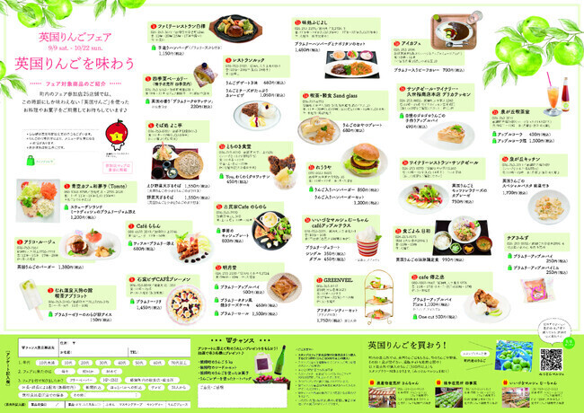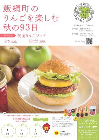 9月9日(土)から10月22日(日)まで、飯綱町のフェア参加25店舗で英国りんごを使ったメニューが提供される。参加店舗で英国りんごのメニューを購入するか、町内直売所でりんご(500円以上)を購入すると、チラシにスタンプが押される。異なる店舗のスタンプを3つ集め、台紙のアンケートに記入すると、町内の直売所でりんごジュース又は飯綱町PRキャラクター「みつどん」のマスキングテープ、ふせん、キャンディーのいずれか1つと交換できる(みつどんグッズは数に限りがある)。スタンプラリーはおひとり様何回でも参加可能。また交換された方の中からWチャンスで、抽選により次の賞品を各3名様にプレゼントする。