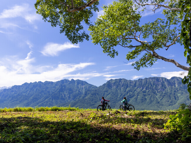 E-bike(電動アシストマウンテンバイク)で普段は⾏けない絶景スポットへ。