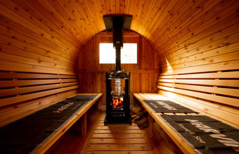 心地よい熱にこだわり抜いたサウナ小屋は、(株)レリバントのサウナ事業責任者の福元修が監修。薪ストーブのゆらめく炎、薪のはぜる音、フィンランド式サウナの特徴であるロウリュによる蒸気、白樺やアロマの香りなど、五感で楽しむ究極の癒しをお届けする。