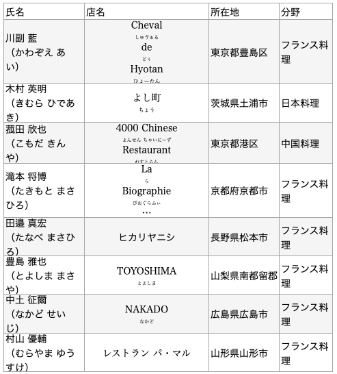 第14回農林水産省料理人顕彰制度「料理マスターズ」受賞者一覧(PDF : 288KB)